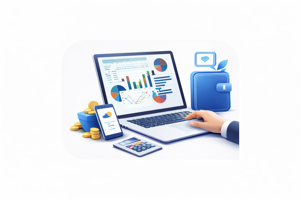 Fitur simulasi sederhana dan kalkulator keuangan yang membantu pengguna memahami penerapan fintech dan perencanaan keuangan secara praktis.